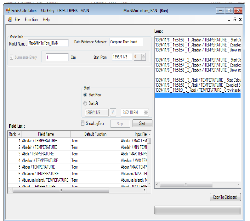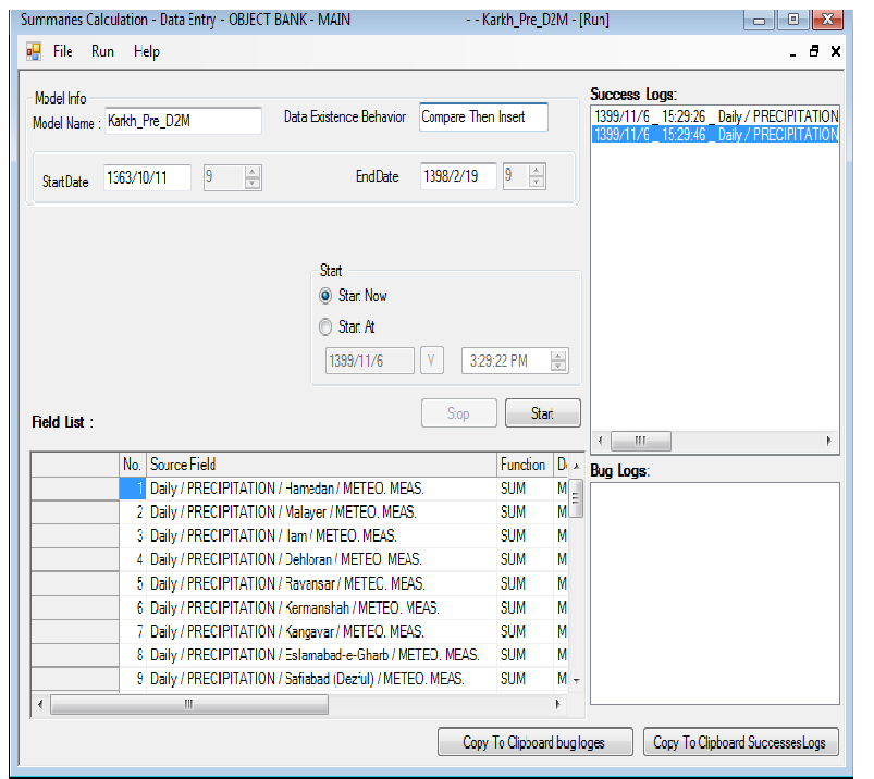 قابلیت تبدیل خودکار گامهای زمانی کوچکتر به بزرگتر (دقیقه ایی به ساعتی و … ) و تبدیل خودکار داده های مرتبط به یکدیگر با استفاده از روابط ( تراز آب به دبی، حجم آب به دبی آب و ….)
