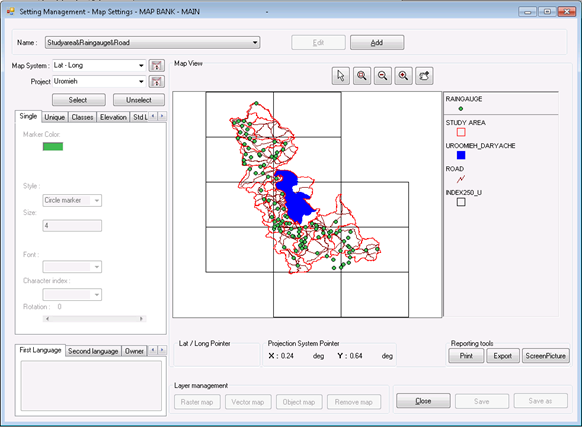 نرم افزار دارای قابلیت استخراج عددی داده بصورت تک ایستگاه و جمعی بوده و دارای قابلیت استخراج تصویری داده بصورت شماتیک، در بستر نقشه جهانی با رعایت مختصات مکانی و خروجی بصورت اسلایدی میباشد.