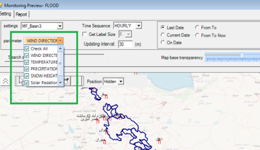 7. استخراج دادهها: خروجی عددی برای یک یا چند ایستگاه (جدول) نمایش شماتیک در قالب نمایه سدها، رودخانهها و… نمایش روی نقشه جهانی با امکان تحلیل آماری یا سری زمانی نمایش اسلایدی همراه با نمودارهای تجمعی و مقادیر آماری خاص